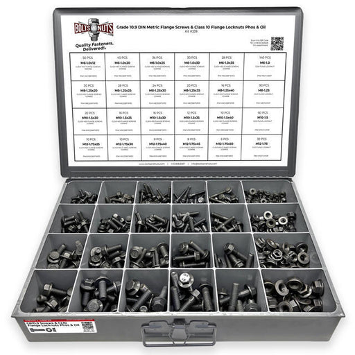 Part Number: Assortment Kit #339739 Pieces - Coarse ThreadGrade 10.9 Hex Flange Screws and Flange Lock Nuts Bolt Information:Class 10.9 Hex Flange...