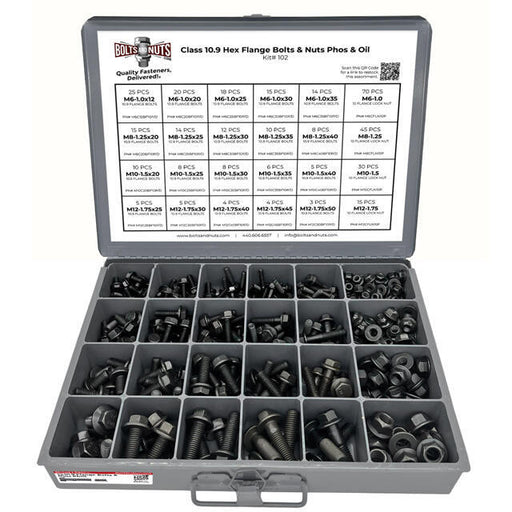 Part Number: Assortment Kit #102370 Pieces - Coarse ThreadGrade 10.9 Hex Flange Screws and Flange Lock Nuts Bolt Information:Class 10.9 Hex Flange...