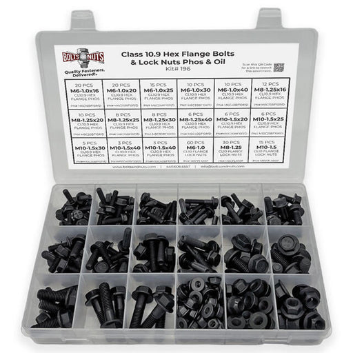 Part Number: Assortment Kit #447370 Pieces - Coarse ThreadGrade 10.9 Hex Flange Screws and Flange Lock Nuts Bolt Information:Class 10.9 Hex Flange...